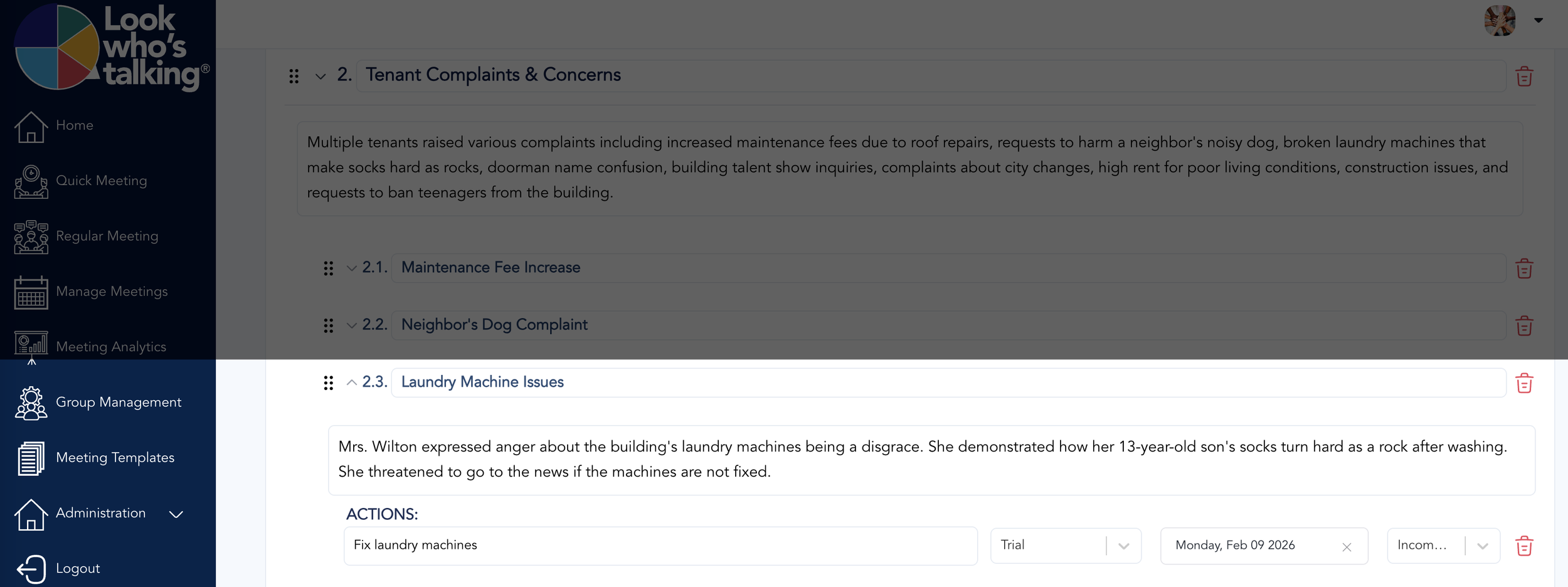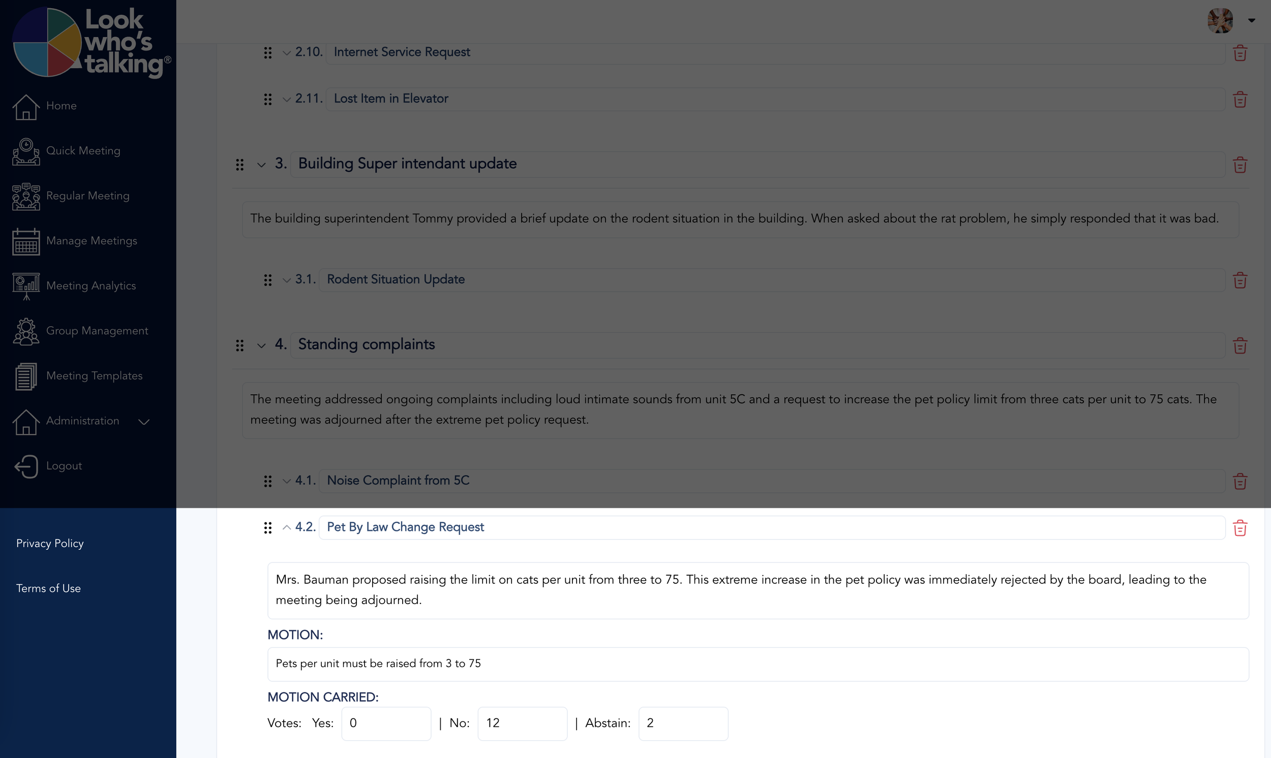 Strata meeting minutes transcribed and formatted automatically in minutes.